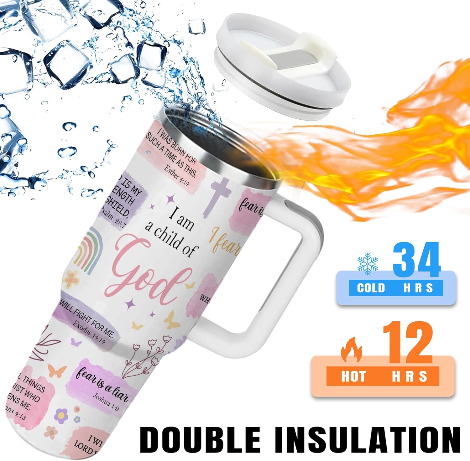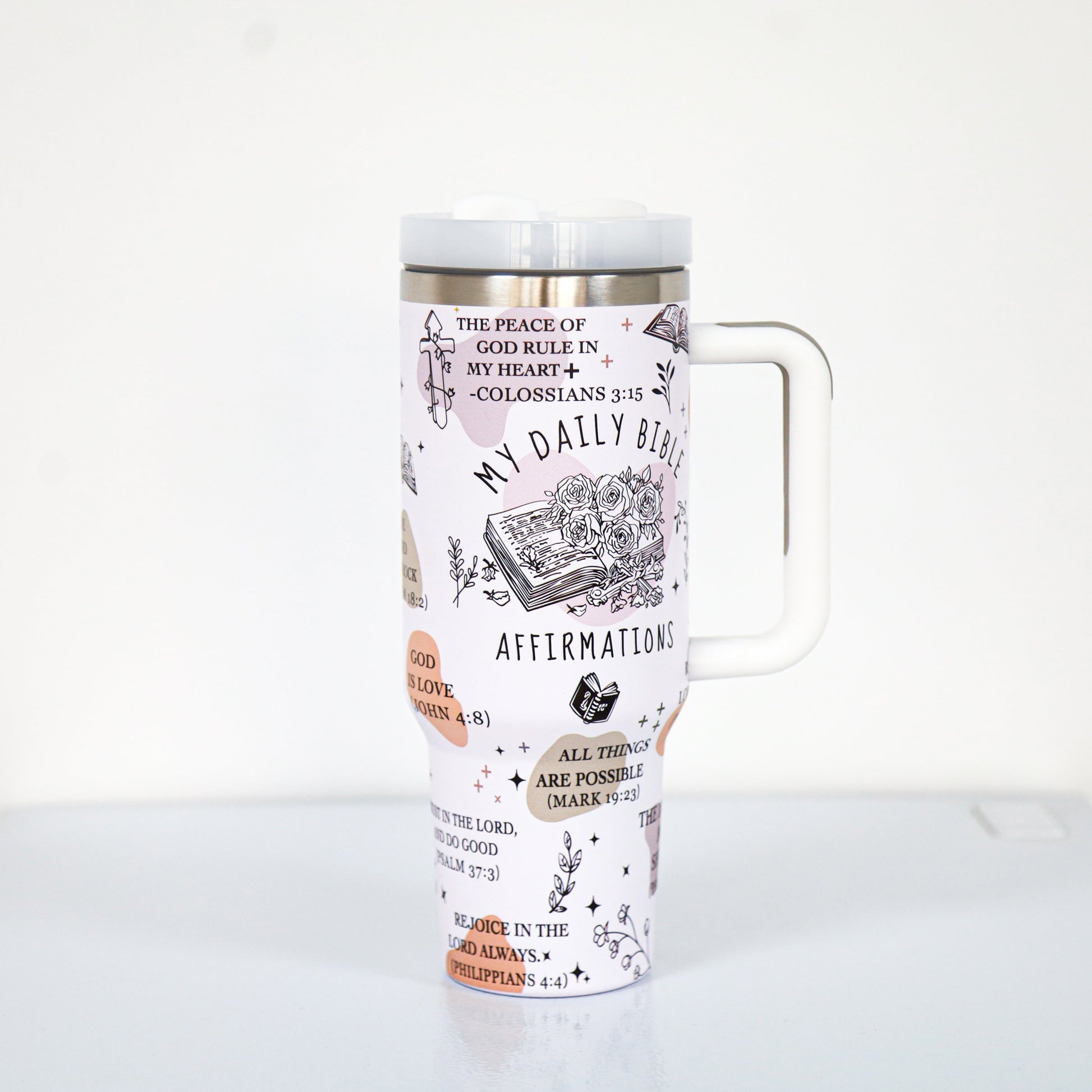 Celebrate faith with timeless designs. Each tumbler embodies Innocence, Love, and Courage—bringing meaning and elegance to your everyday moments.