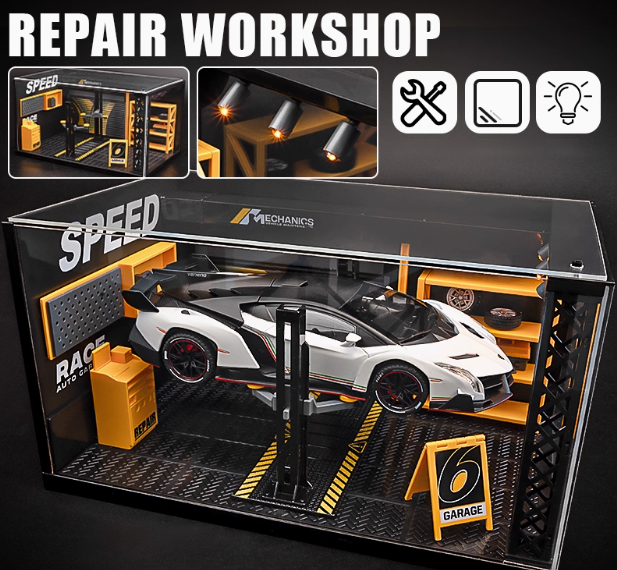 Lamborghini Logo Backdrop, Solid Wood Base, and Dustproof Case included for elegant display