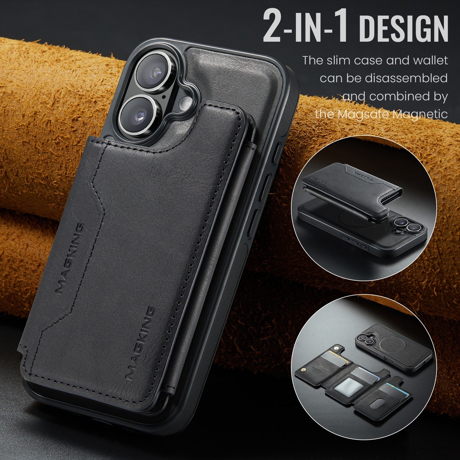 3. the base case is made of TPU+PC, the base case and the card case adopt the 2-in-1 magnetic split design, which is magnetic to each other and can be used separately.