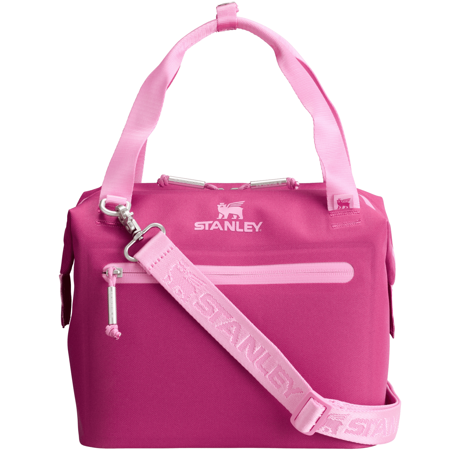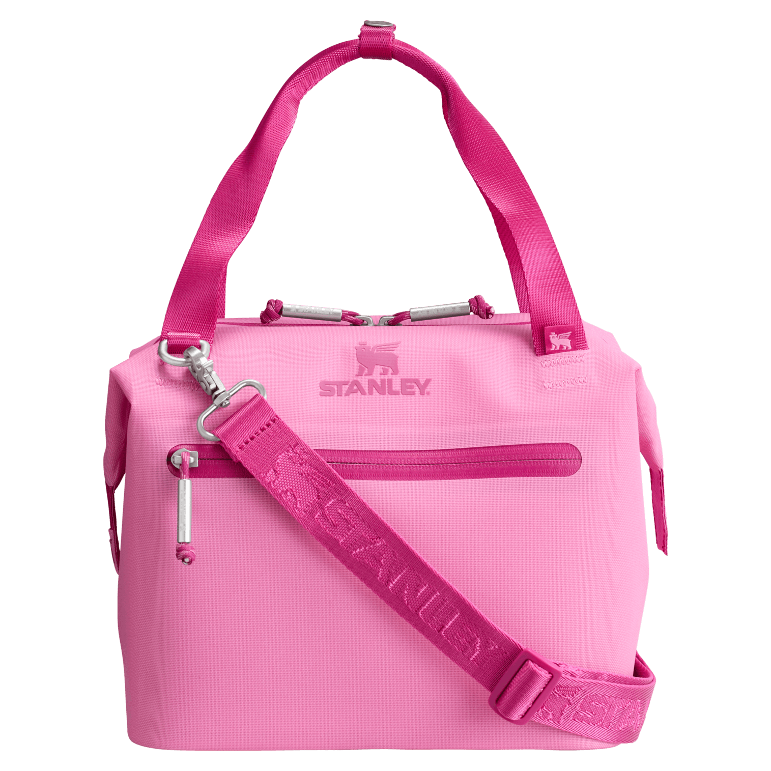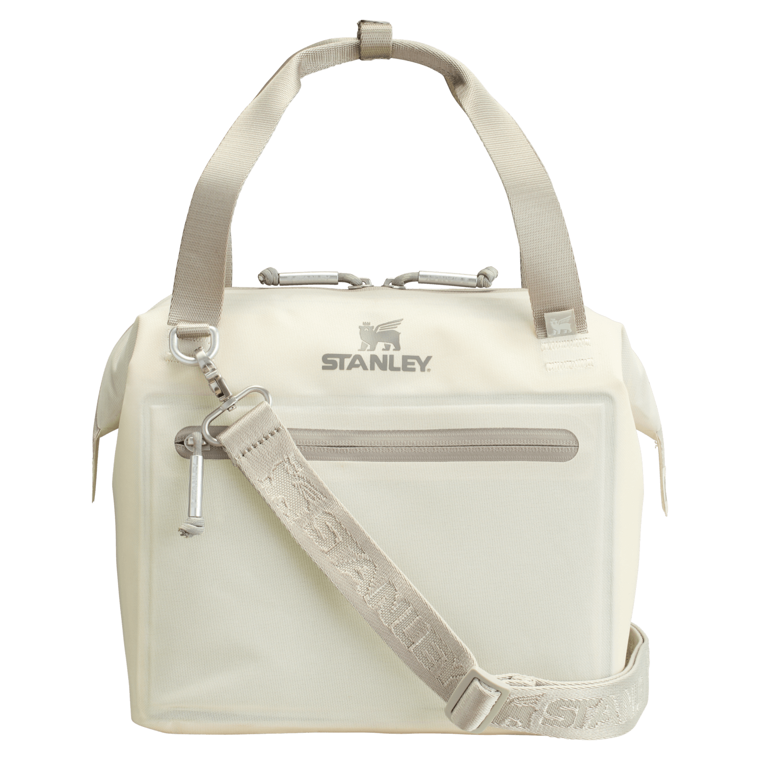 Keeps drinks cold for 12 hours. Fits 10 cans, easy to pack, and ready to go hands-free or handheld.